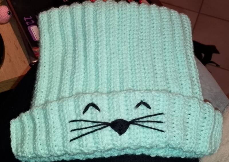 Die Katzen-Beanie gestaltet sich ganz einfach. Er wird lediglich mit Stb. oder hStb. in Reihen gehäkelt und am Ende an den Seiten zusammengenäht bzw. gehäkelt. Das Schwierigste ist das Aufnähen des Katzengesichts, wobei es jedem überlassen ist, ob er die Mütze mit oder ohne Gesicht machen möchte.